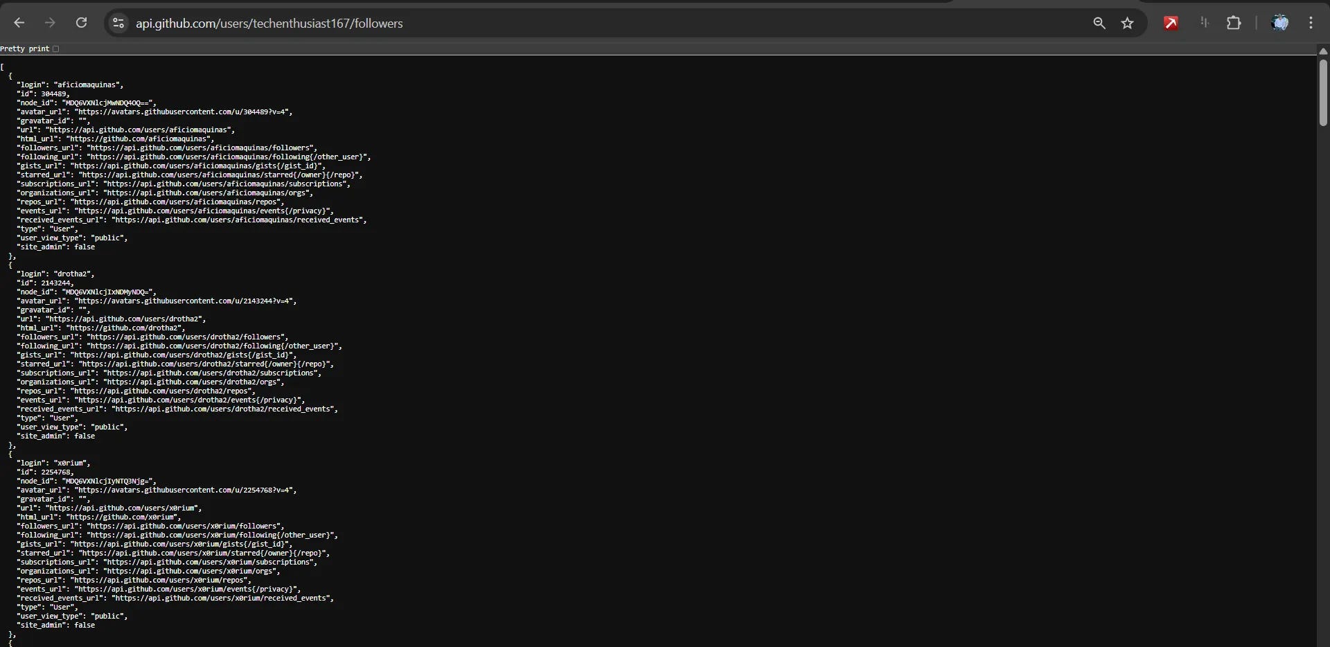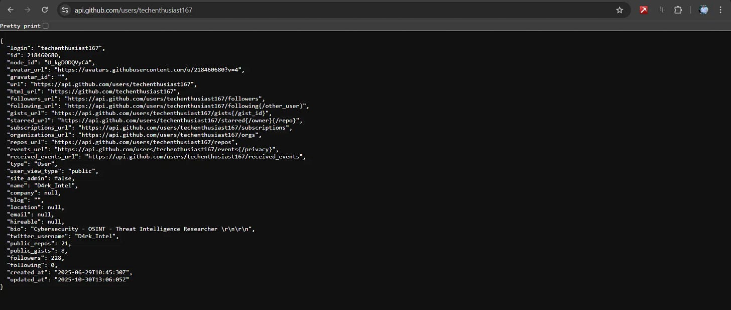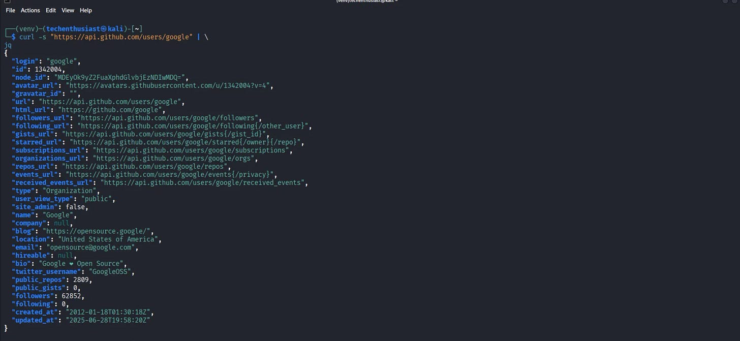 curl -s “https://api.github.com/users/Techenthusiast167”
