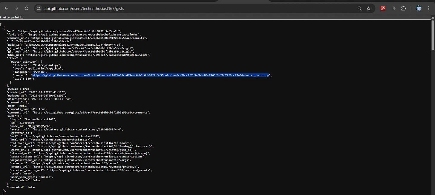 curl -s "https://api.github.com/users/Techenthusiast167" | \